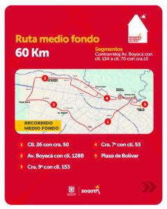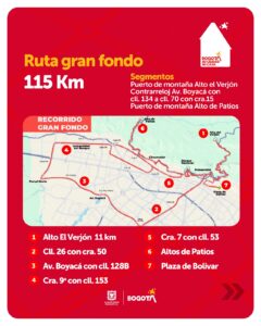Esta es una de las competencias de ciclismo aficionado más importante del país con un trazado de 60 km., (Ruta Medio Fondo) y otro de 115 km., (Ruta Gran Fondo), 100 % urbano. El recorrido les promete a los pedalistas vivir una experiencia inigualable que comienza y finaliza en la emblemática Plaza de Bolívar, y recorrerá nueve localidades de la ciudad (La Candelaria, Los Mártires, Chapinero, Usaquén, Suba, Engativá, Fontibón, Teusaquillo y Santa Fe).