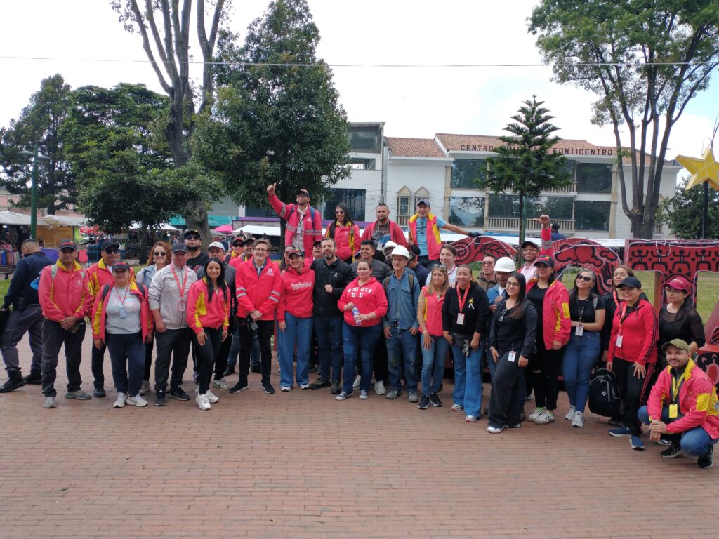 Los funcionarios transmitieron el mensaje de cuidar las instituciones al realizar actividades de limpieza y pintura en el edificio emblemático en el marco del parque, donde funciona Asojuntas, además de pintar una banca, el poste y lavar, con cepillo y escoba el símbolo de Bogotá.